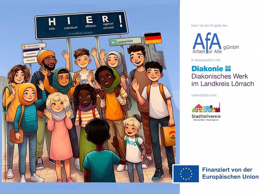 Seit dem 15. September 2023 begleitet das Projekt „Hier!“ Kinder, Jugendliche und ihre Eltern im Landkreis Lörrach bei der Orientierung und Integration in ihrer neuen Umgebung. Im Fokus stehen insbesondere die Themen Schule, Beruf und der Umgang mit Behörden. Das Projekt baut auf den Erfahrungen eines erfolgreichen Vorgängerprojekts auf, das bis 2022 lief.